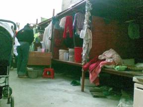 居住 一部分人住在废弃的酒店,另一部分人住在废弃的楼房里。废弃的酒店里大约有100-150个平方,大约住100多人,废弃的楼房,总共有三层,走廊分成两排,每排有10多个房间,每个房间住10多人左右,是上下铺,男女混住。