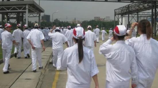 普通体力劳动者被称为“员工”,而其他人员,包括经理、主管、工程师、技术员和办公室文员,则被称为“职员”。在连续两年加薪后,公司从2006年底开始通过提高员工的工作强度和减少职员的加班费来降低成本。首先稳步提高了分配给各生产线的工作定额。如果工人不能完成定额,他们第二天的午餐时间就会缩短,以完成前一天未完成的任务。许多工人抱怨工作太累。为了解决随之而来的高离职率问题,工厂限制了工人辞职的权利。未经适当“许可”而离职的工人,公司将保留其最后一个月的工资。随后,从2007年7月起,工厂限制“职员”每月加班时间不得超过72小时。此外,与台湾工厂一样,从2007年8月起,工厂要求“职员”打卡。