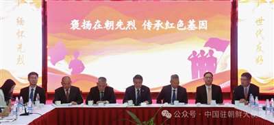 2025年9月23日,在中国人民志愿军出国作战75周年和第十二个“烈士纪念日”即将到来之际,中国驻朝鲜使馆和中国驻朝鲜志愿军烈士褒扬代表处共同举办“褒扬在朝先烈 传承红色基因”主题座谈会。王亚军大使等驻朝鲜使馆外交官、李海龙主任等褒扬代表处相关工作人员和志愿军老战士后代代表以及旅朝华侨、留学生、在朝中资机构和媒体代表等参加。