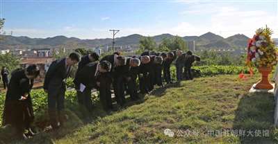 2025年10月20日,王亚军大使率使馆部分外交官、中国驻朝鲜志愿军烈士褒扬代表处相关工作人员赴平壤市江东郡考察并祭扫新发现并拟迁建的中国人民志愿军烈士纪念塔。朝鲜城市经营省对外经济局局长金英哲、外务省工作人员、江东郡人民委员会城市部副部长李顺燮等陪同。纪念塔坐落在江东邑内一座小山上的民居旁,塔身刻有“国际主义烈士纪念塔”字样,塔基一侧有邓华将军亲笔书