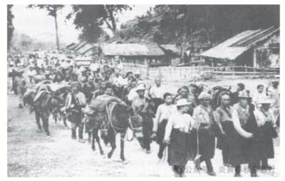 1959年3月17日,十四世达赖喇嘛掣签问卜后,作出了外逃的决定。晚10时左右,十四世达赖喇嘛在叛乱分子护送下从罗布林卡附近渡过拉萨河,经山南出逃。图为逃往印度的叛乱分子