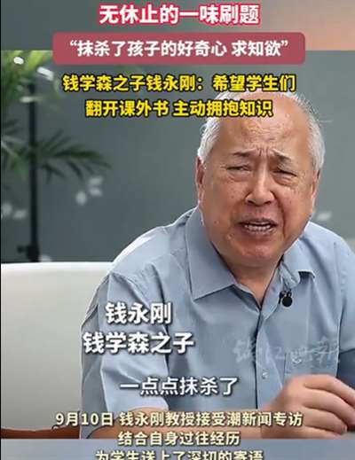 钱永刚教授指出,无休止的一味刷题把孩子们与生俱来的好奇心、求知欲一点点抹杀了……钱教授对这样的现状感到担忧:失去探索热情的年轻人,未来又能拥有怎样的发展?钱教授希望尽快扭转这种无休止刷题,提倡孩子们用有限的空闲多看点课外书。