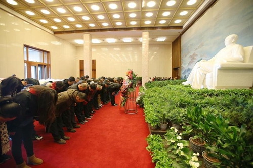 毛主席纪念堂是党和国家的最高纪念堂,是以毛泽东同志为核心的党的第一代革命领袖集体的纪念堂,是全国爱国主义教育示范基地。在工作人员的引导下,全体人员排列着整齐的队伍,缓步迈上台阶,来到纪念堂北大厅。大厅正中安放着汉白玉毛主席坐像,领袖亲切慈祥的形象栩栩如生。全体成员向毛主席坐像敬献花篮,鞠躬致敬。随后,大家怀着无限崇敬和怀念之情列队瞻仰毛主席遗容,表达对一代伟人的深切怀念。