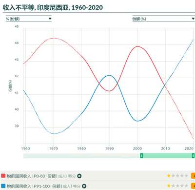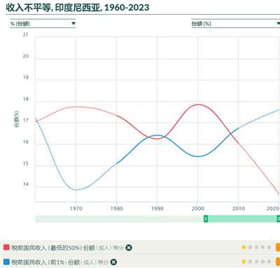 我们看看印尼的收入与财富分配情况(数据来源:世界财富与收入数据库)。
