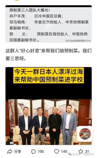 而且据网友报料,在中国发展预制菜背后的推手还有日本势力: