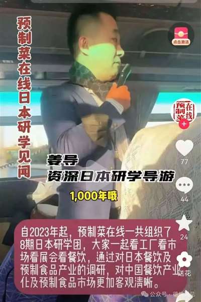 抖音有个号叫预制菜在线,长期在全国推行预制菜,长期拉人去日本学习,账号人叫郑义,日本人到中国搞预制菜就是他牵线。