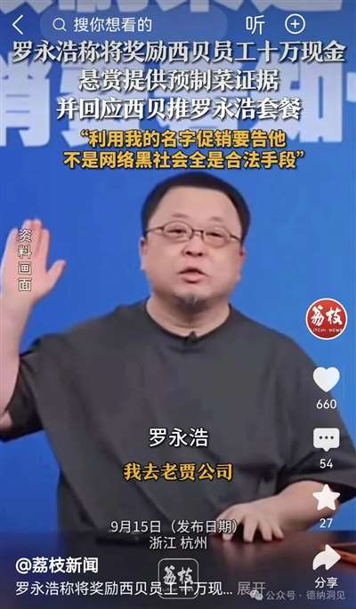 罗永浩则反击,声称要悬赏10万元提供预制菜证据。