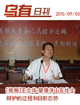 王立华讲述了他为郭松民因维护狼牙山五壮士被诉案辩护的始末,概述了在法院为郭松民辩护的辩词,并介绍了当前维护“狼牙山五壮士”名誉斗争的态势。